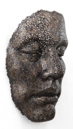 The young artist Seo Young-Deok’s preoccupation within his practice lies in the human body and the contamination humanity experiences through the materiality in our society. With large-scale and life-size human faces and figures created out of metal chains and welding, Young-Deok creates the modern man and woman in the metaphorical chains created for themselves. Chains themselves being a product of industrialism and mass production are in these instances linked with the human cells and the fabric of the human figure. In one sense, the figures thus become dehumanized, through enlargement and/or through the hollow space in their composition. However, in combination with this, the life-like detail of the forms and the violence of the welding enhance an emotional anguish in the works that expresses the alienated modern day human experience.
