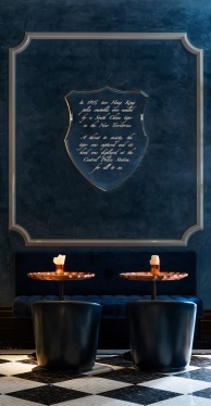 室內裝潢 – 刻有歷史故事的盾牌和以英式傳統銅盤製成的檯面 |