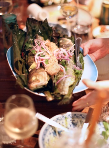 Make your own Brazilian-style cocktails at the Caipirinha Shack with Brazil’s spirit of choice cachaça |   Grilled Seabass in banana leaf with fried banana and cassava farofa