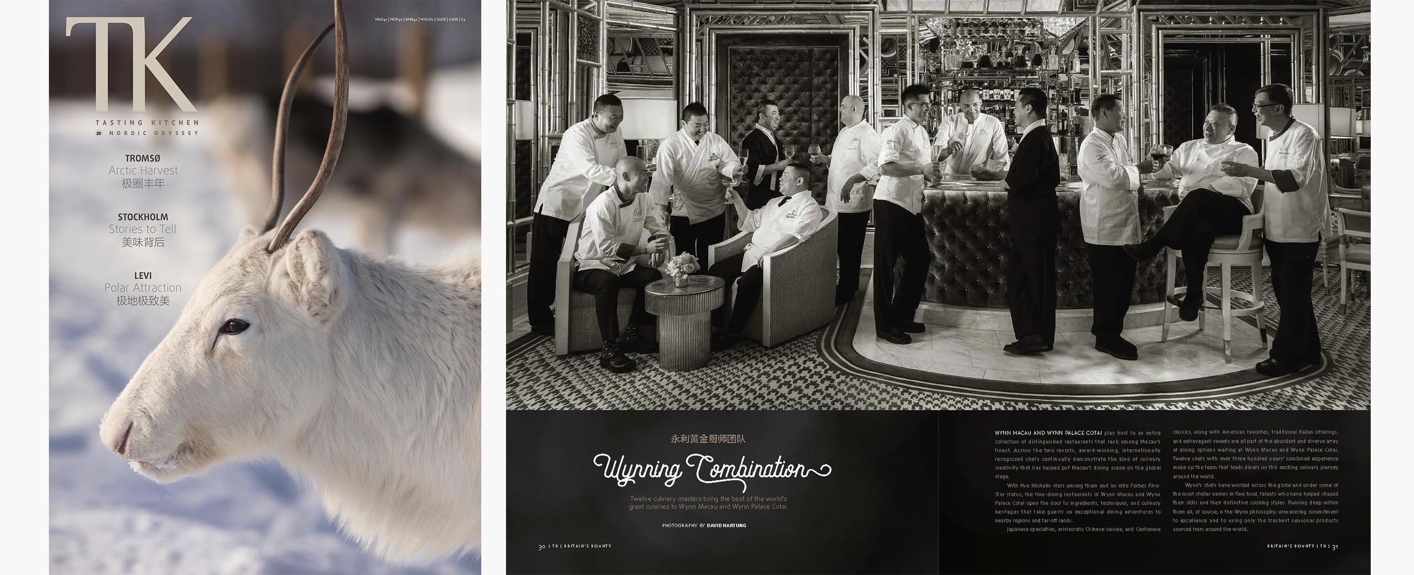 Beebe’s beautifully integrated design scheme for TK29 Nordic Odyssey featured an arrestingly simple cover with an iconic image of a white reindeer in the snow. It perfectly conveyed the issue’s message that the often-stark Nordic regions are filled with a rich natural and cultural vitality. Her design effectively projected the energy expressed in the theme of odyssey, a quest across the lands of Norway, Finland, and Sweden in search of the people, places, and distinctive cuisines that characterize the Nordic way of life.