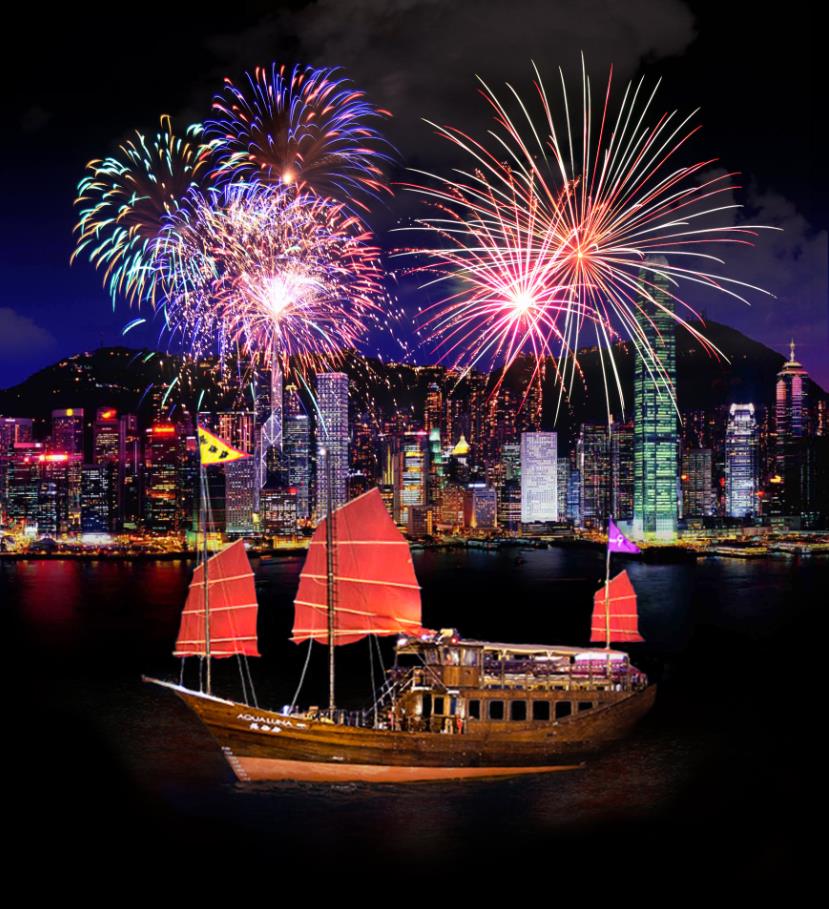 若想近距離觀賞新年煙花表演,賓客可登上別具代表性的紅帆木船「張保仔」(aqualuna)或掛上青花龍紋船帆的「大張保」(aqualuna II)暢遊維港,共享美酒小吃。成人及兒童門票分別定價每位港幣1,188元和788元。 |