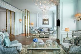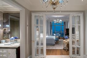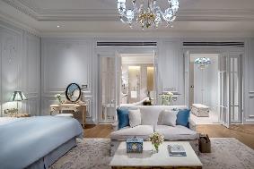 The French furnishing style echoes with Sofitel’s brand origin and characteristics. The colors of the interior space are whitened and matched with ornate color palette. The whitening techniques express a subtle and implicit attitudes and the match colors primarily feature white, gold and wooden tones. The curve of the tables and chairs bring the whole interior space with a soft and exquisite sense dotted with luxurious details. Adorned by designer furniture and silverware of French style, these rooms/suites emanate a noble flavor with exquisite and concise setting, making a perfect match with Sofitel’s brand connotation. The exquisite crown carving on the head of the beds paired with romantic gauze curtains adds a palatial fantasy from Louis XVI’s court.