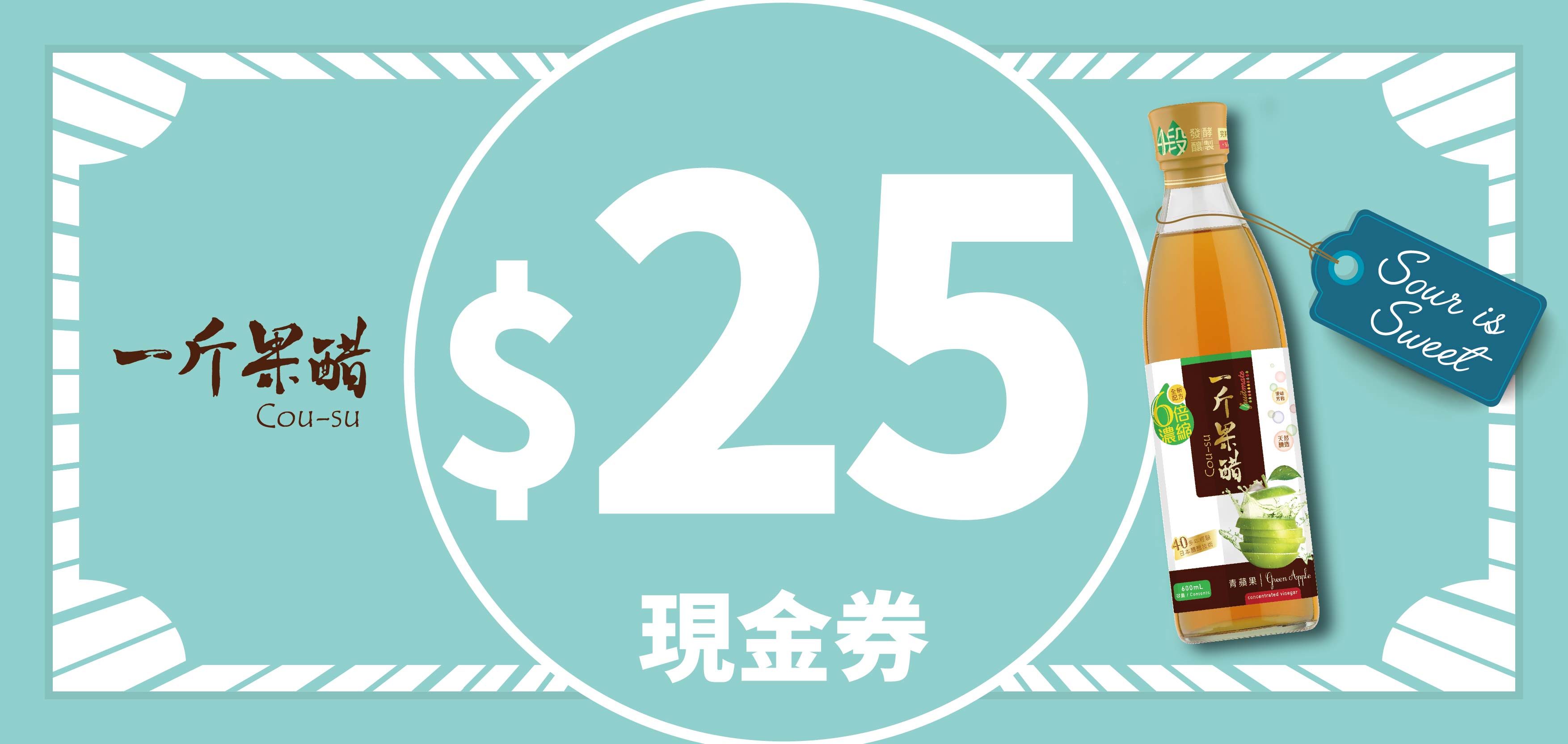現場即買果醋Mocktail 更可獲贈$25現金劵以購買一斤果醋的產品(須購買兩支或以上)。