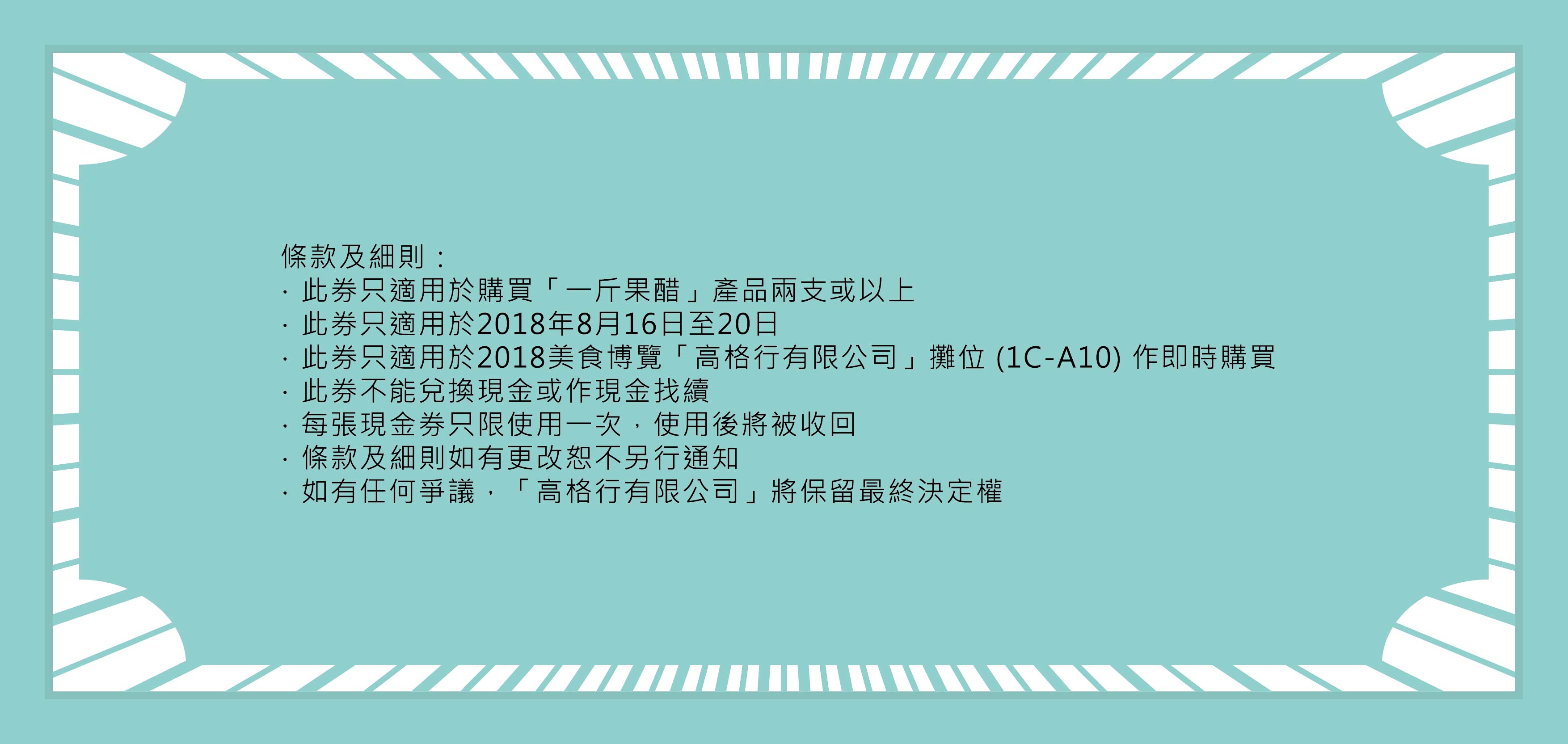 即場購買一斤果醋產品兩支或以上更可以$5換購果醋Mocktail一杯(原價:$30)