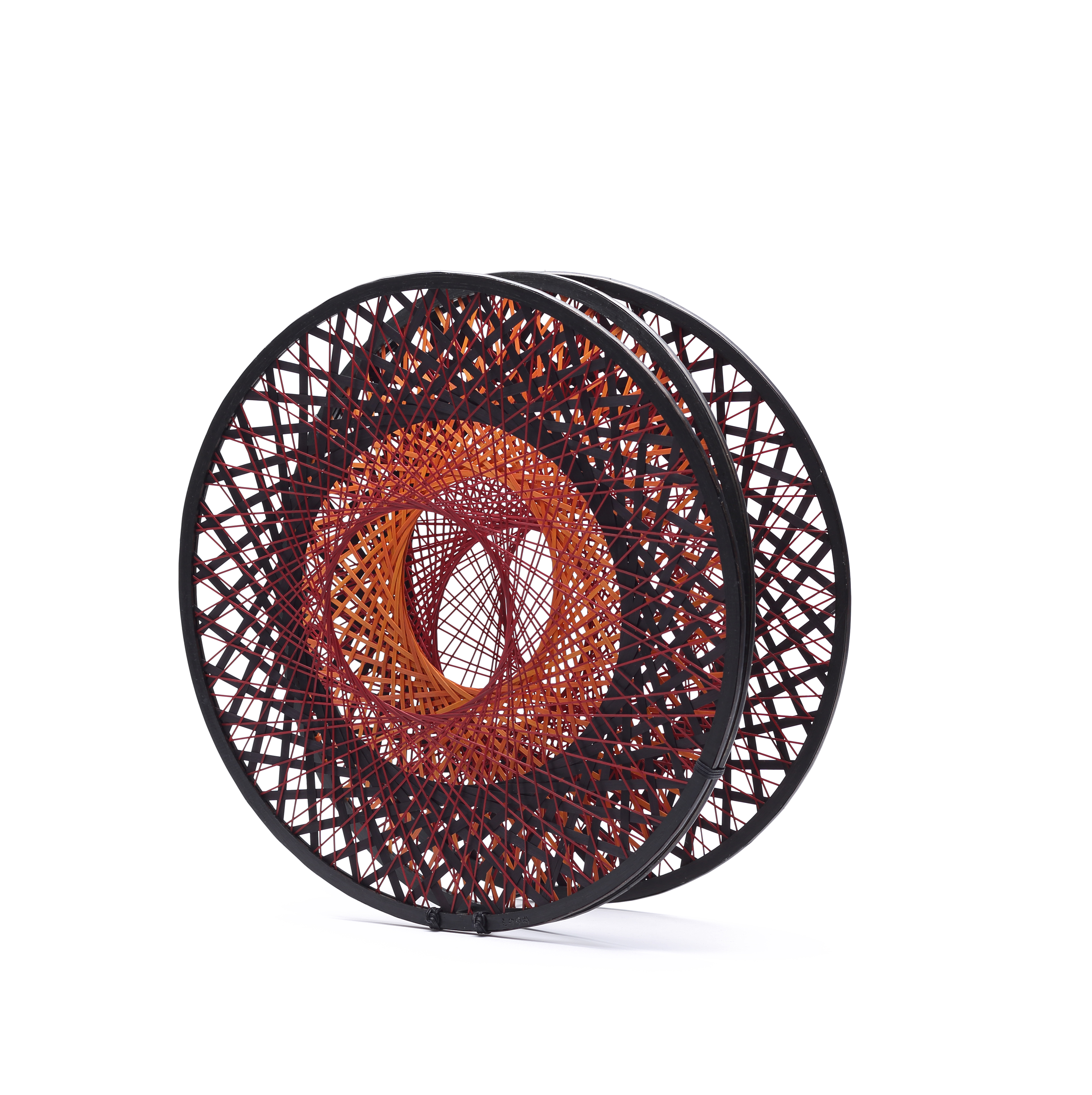 Mie Kodama’s (b. 1976) 深受大自然啟發,創作出一系列圓形作品,月亮,樹木,日落在湖面上的倒影都是她的創作題材。她用煙熏深褐色的竹子,以“Susutake”技術一層層地編織出大自然的美,帶領觀眾更深入地了解世界。
