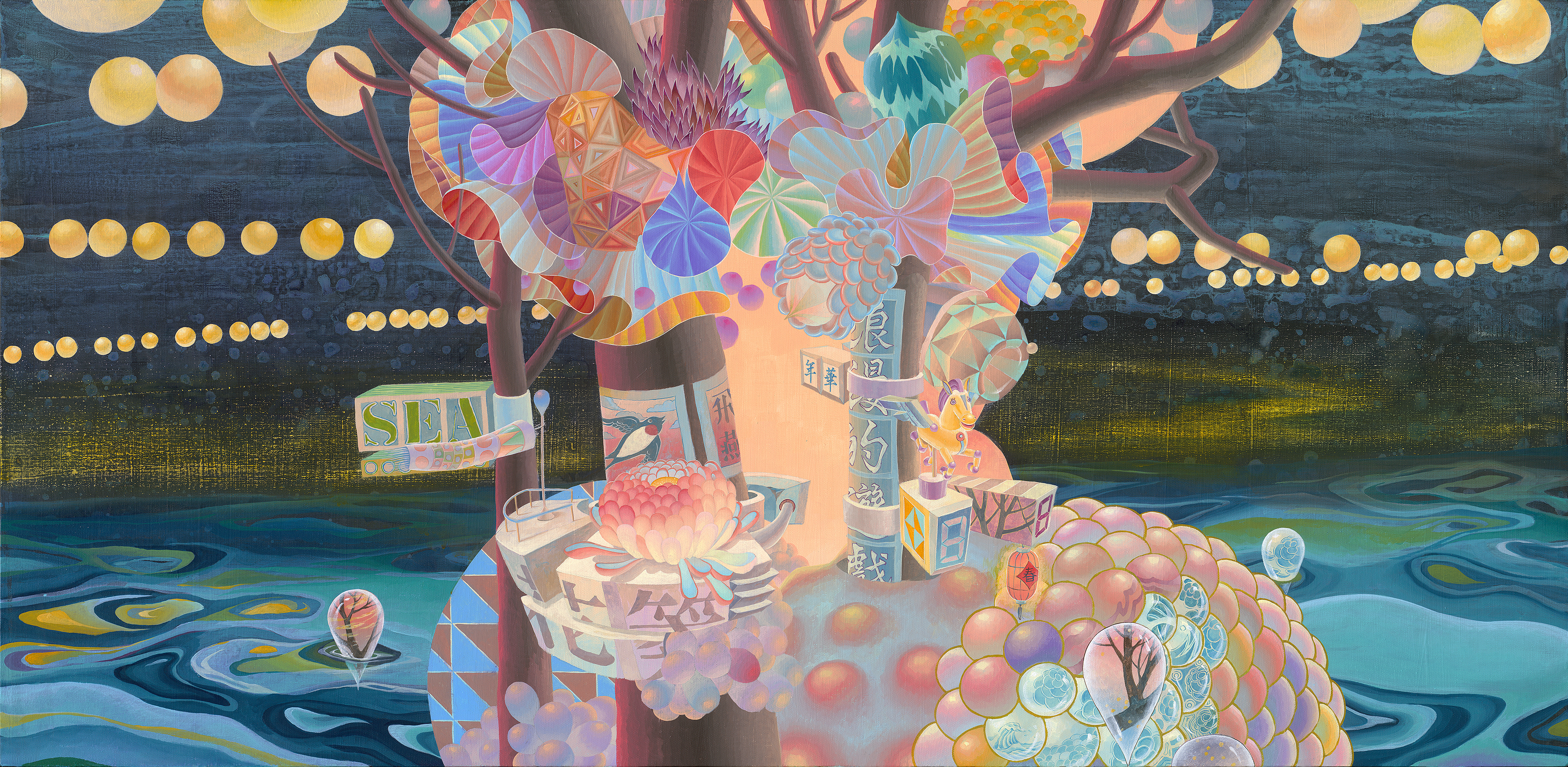 Moon Hyeong-tae (b. 1976) 透過作品記錄他的日常生活,經歷和環境。他以扭曲的形狀和強烈的色彩創作出超現實的場景,不僅超越了他的日常寫照,更表現豐富的情感和遭遇。