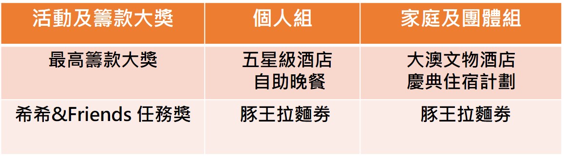 參加者若成為小母牛籌款大使,為活動額外向親友籌款,更有機會贏得最高籌款大獎--大澳文物酒店Staycation套餐,或五星級酒店自助晚餐及獲發嘉許狀,跟親朋好友享受充電之旅!。活動所得善款將支持小母牛在內地的可持續發展項目,提升農戶畜牧及種植等技能,助小農家庭創建美好生活。