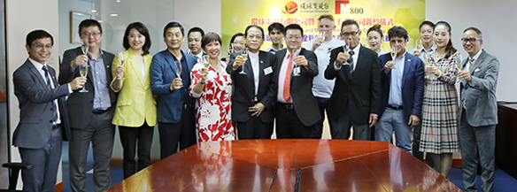 (Members of Universal Television Limited and M800 Limited celebrating the new partnership with a toast.)