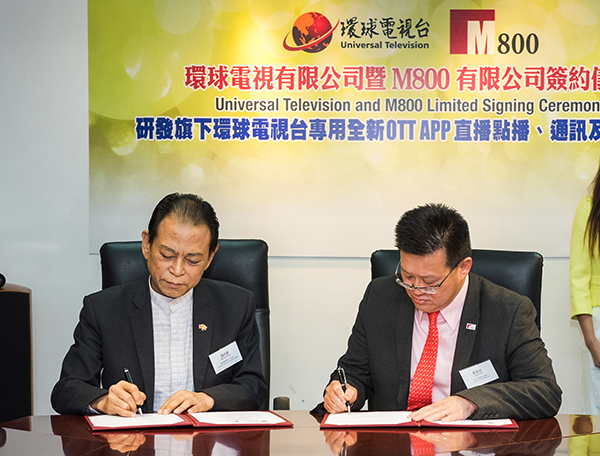 Universal Television Limited Chairman Mr. WEI Yue Tong and M800 Limited Co-Founder, serving as Chairman & CEO, Mr. Steven YAP, attended the signing ceremony today. The collaboration between the two companies is in response to the needs of Universal Television’s users for its current OTT app.