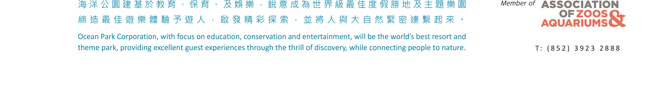 Ocean Park Una Lau Tel: 3923-2601 / 9389-3827 Email: una.lau@oceanpark.com.hk Esther Li Tel: 3923-2190 / 6650-2676 Email: esther.tle.li@oceanpark.com.hk Vienne Kay Tel: 3923-2547 / 6274-4990 Email: vienne.kay@oceanpark.com.hk |