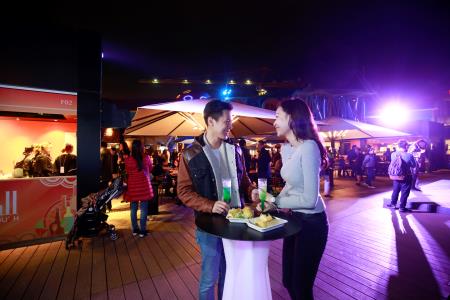 In addition to the fabulous music programmes, the fire-and-water extravaganza “Symbio!” at the Aqua City Lagoon is also a must-watch show. The 360° water screen show is special effects-laden with water cannons, flame jets and live music, creating a visually stunning spectacle. Guests can enjoy a variety of fine wines and delicacies, while enjoying a night of sensational performances. Guests can also delight in the popular drinking game Beer Pong and the Giant Jenga, adding excitement and laughter with friends to the evening of food and wine.