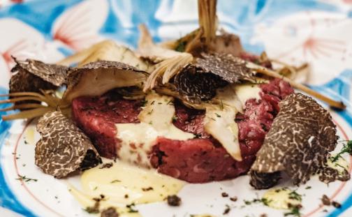 | 「黑松露雅枝竹牛肉他他配阿馬爾菲檸檬蛋黃醬」 |